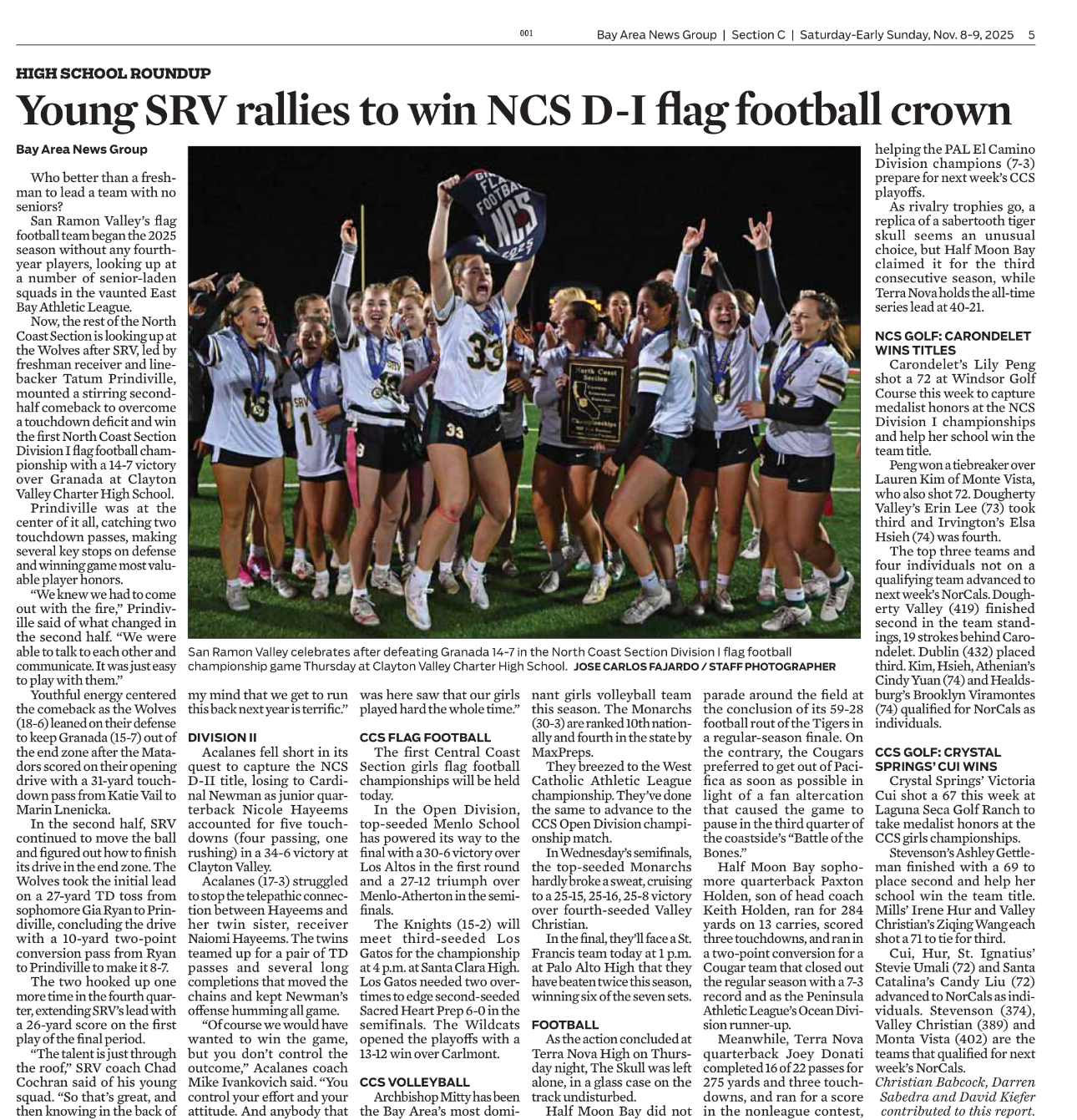 @TatumHoops2029C/O 2029 | 5’11” | 4.0 GPA | San Ramon Valley HS Basketball #11 & Varsity Flag Football #22 WR/LBJason Kidd Select WBBWest Coast Blitz Flag Football Young SRV Rallies to Win 2025 NCS D-1 Flag Football Championship Led by Freshman Prindiville Tatum Prindiville stuff vs St Francis Tatum Prindiville vs CalHS 2025 Tatum Prindiville catch over Foothill 2025 2025 MaxPreps Flag Player of the Game